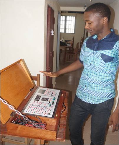 Banc didactique par Mr. Kevin KENTZA ZANA est un équipement de laboratoire conçu et fabriqué localement à travers la maîtrise de la programmation des microcontrôleurs et de l’électronique. Il est constitué dans un seul bloc des appareils suivants: Générateur basse fréquence, oscilloscope, ohmmètre, voltmètre, ampèremètre, capacitancemètre, fréquencemètre. Cet équipement permet de réaliser plus de 80 pour cent des travaux pratiques d’électricité, d’électronique et d’électrotechnique prévus dans l’enseignement secondaire général et technique et dans l’enseignement supérieur. Il est également utilisé dans les laboratoires de recherche. Il est transportable comme un ordinateur portable et il coûte environ 250 000 FCFA. Or sur le marché en ce moment, les laboratoires ne peuvent pas acquérir l’ensemble des composants indiqués ci-haut à moins de 1 000 000 FCFA. Et puis, leur acquisition en composants séparés entraîne une occupation d’un très grand espace dans les laboratoires. |