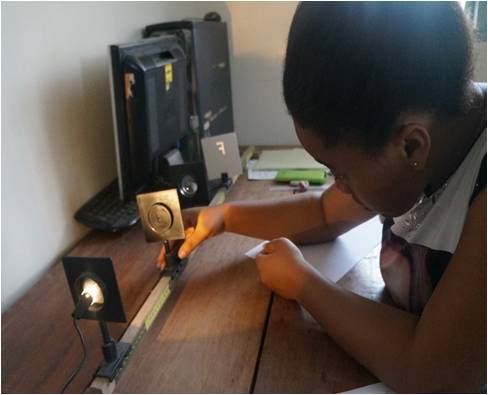 Etudiante en séance de travaux pratiques d’optique géométrique à Sci-Tech Services |